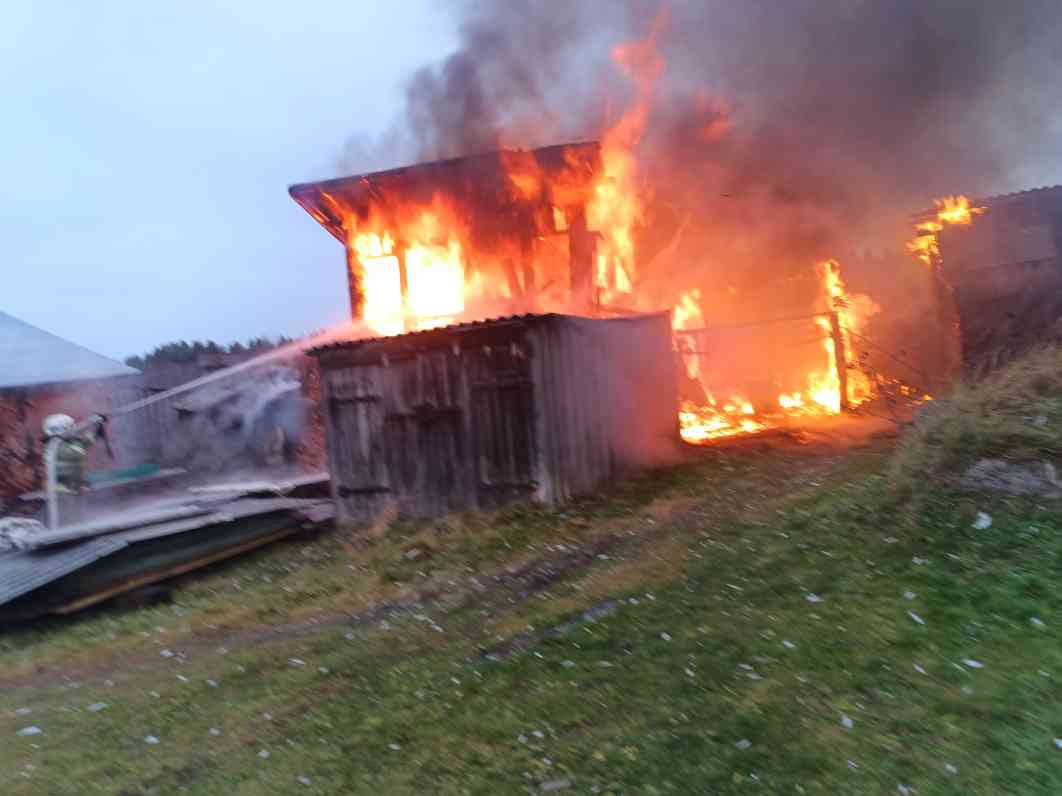 Потушить пожар удалось в 11:05. Пострадавших нет. Сгорели четыре постройки, в одной из них огнем уничтожен снегоход «Ямаха», сообщили в Госкомитете по ОЖ и БН.