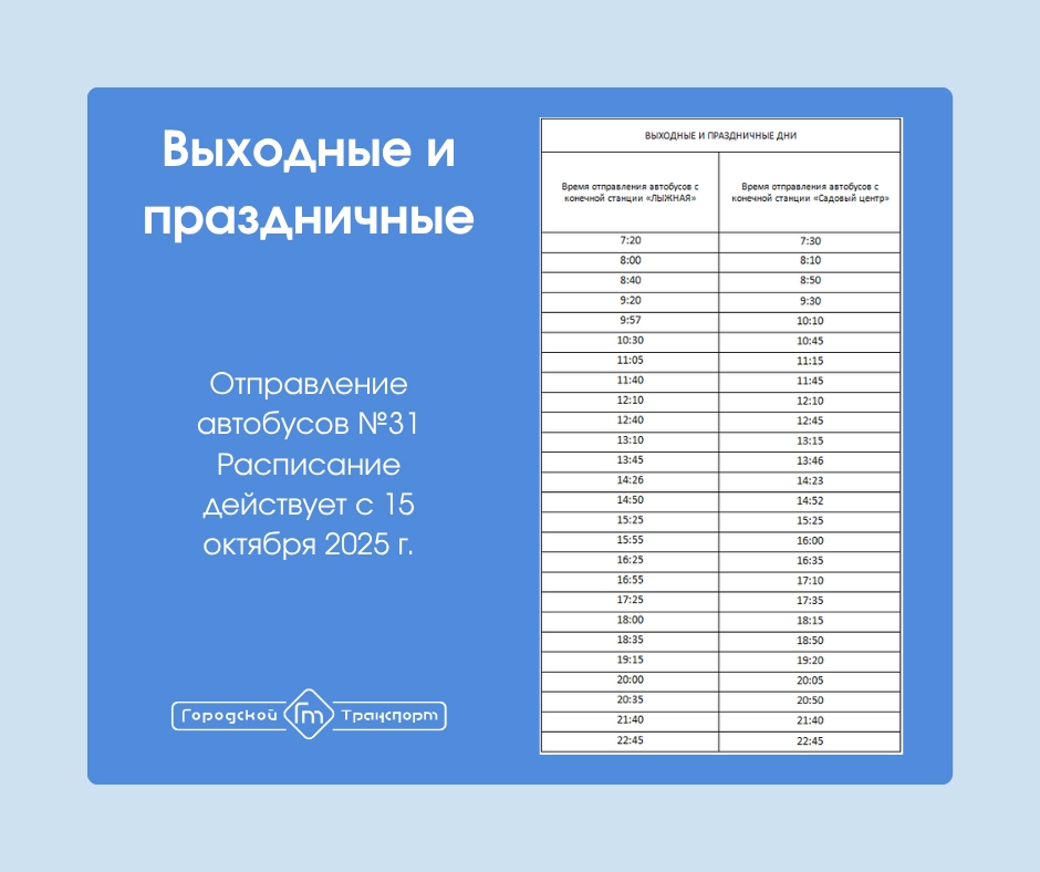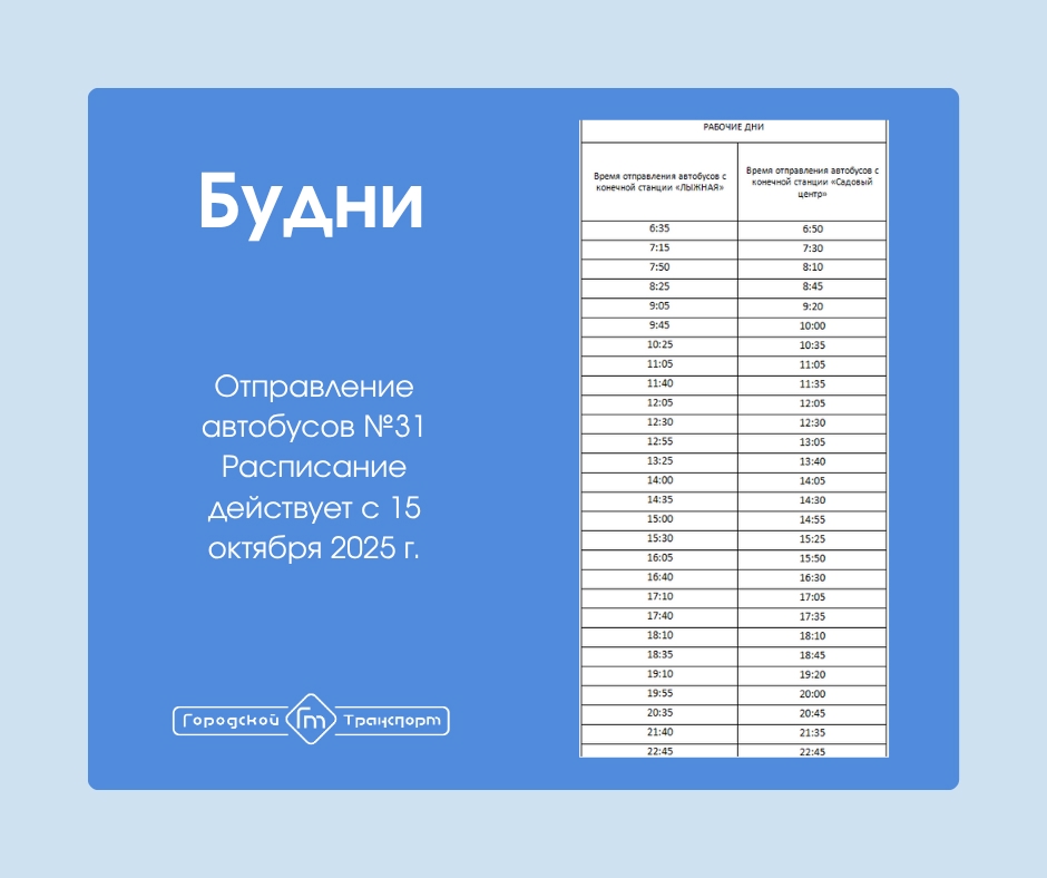 — Мы рады сообщить, что учли ваши дополнительные пожелания и скорректировали расписание маршрута номер 31! Теперь ваши поездки станут еще более удобными и комфортными, — сообщили в паблике организации «Городской транспорт».