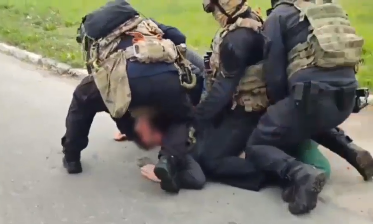 Мужчина попытался сбежать, когда понял, зачем его остановили, но его жестко скрутили полицейские.