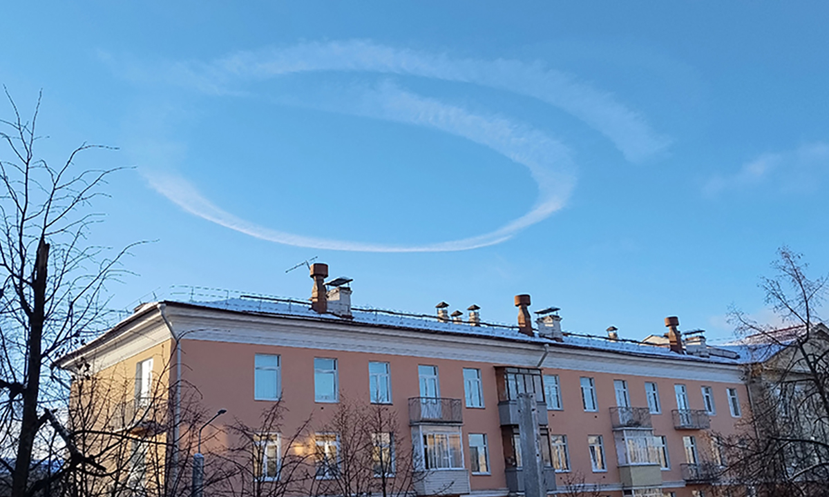 Жители Петрозаводска обратили внимание на загадочную петлю, которая появилась в небе. Очевидцы запечатлели ее в районе улиц Куйбышева и Станционной. Фотографии они прислали в редакцию информагентства «Республика».