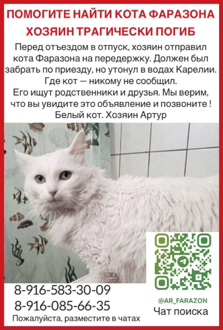У погибшего Артура также в Москве остался кот Фаразон, перед поездкой он отдал его на передержку. Сейчас его ищут друзья погибшего.
