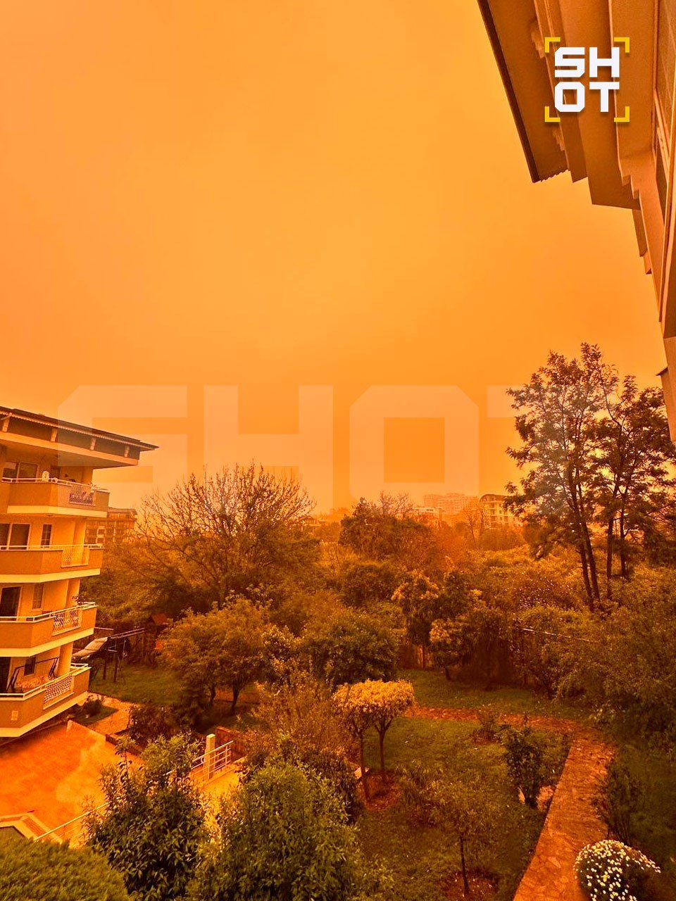 Солнечный свет преломляется через частицы пыли, меняя цвет неба. Местные жители и отдыхающие обеспокоены. Видимость ухудшилась, дышать стало тяжелее. На днях такое же облако «сахарской пыли» накрыло греческий Крит — там небо стало ярко-красным, а аэропорт ограничил работу.