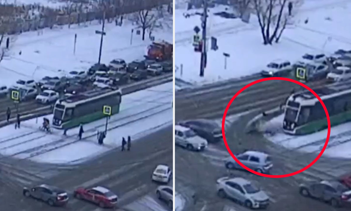 Судя по видео, дорогу на разрешающий сигнал светофора переходила группа пешеходов, большинство — учащиеся расположенного рядом лицея. Трамвай вылетел на переход и снес двух человек.