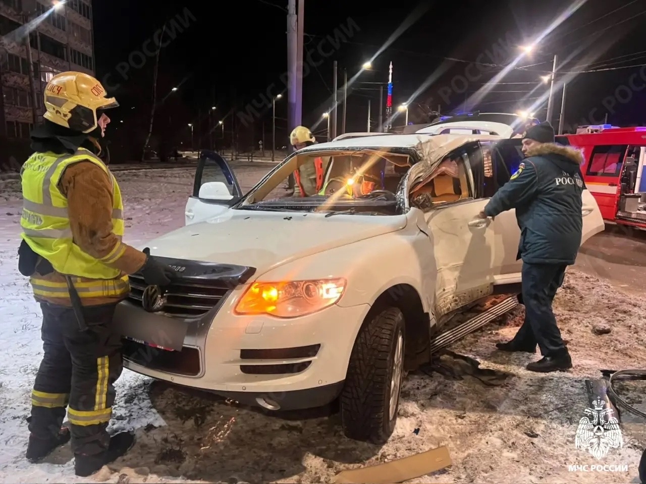 Ночью в Петрозаводске машина врезалась в линию электропередач