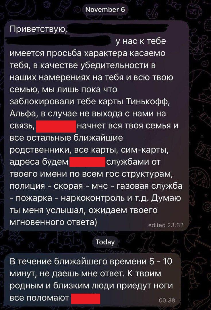— Если в течение 5-10 минут не даешь ответ, к твоим родным и близким приедут люди и ноги поломают, — угрожал мошенник одной из жертв.