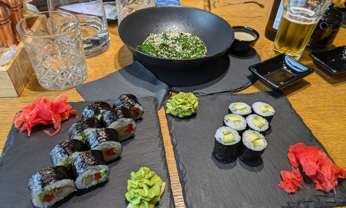 Главное — следить за количеством риса. В роллах его обычно заправляют уксусом и сахаром, из-за чего большая порция может привести к «углеводной перегрузке». Диетолог советует выбирать хосомаки (это маленькие роллы с начинкой только из одного вида рыбы) или варианты с овощами и салатом.