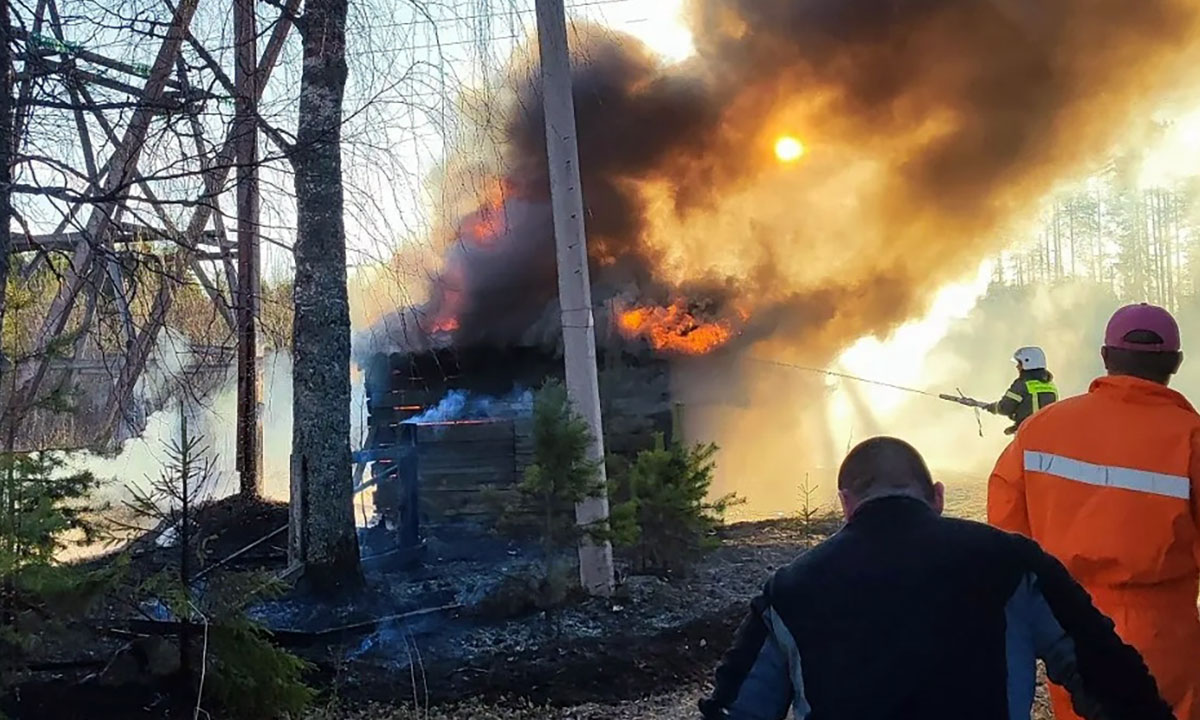Очередной серьезный пожар в Карелии: строение выгорело целиком