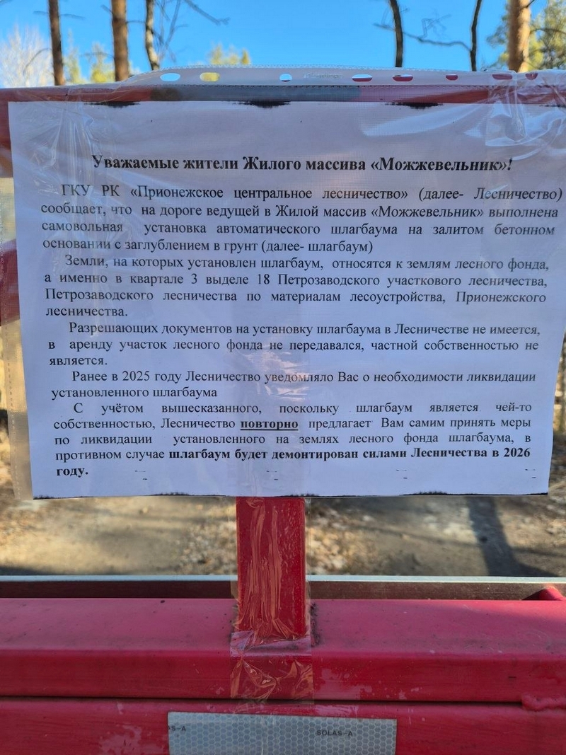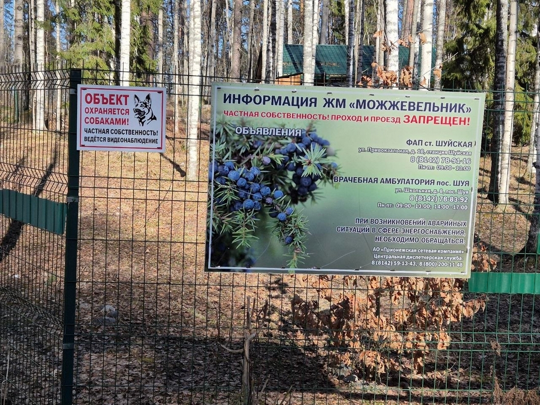 В жилом массиве «Можжевельник» вблизи горы Сампо в Прионежском районе год или два назад появился мощный шлагбаум. В местном лесничестве сообщили, что земли относятся к лесному фонду и шлагбаум незаконный. В 2005 году лесничество требовало убрать шлагбаум и угрожало демонтировать его в 2026 году.