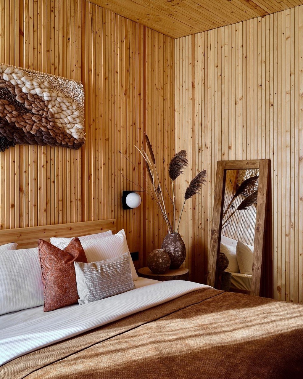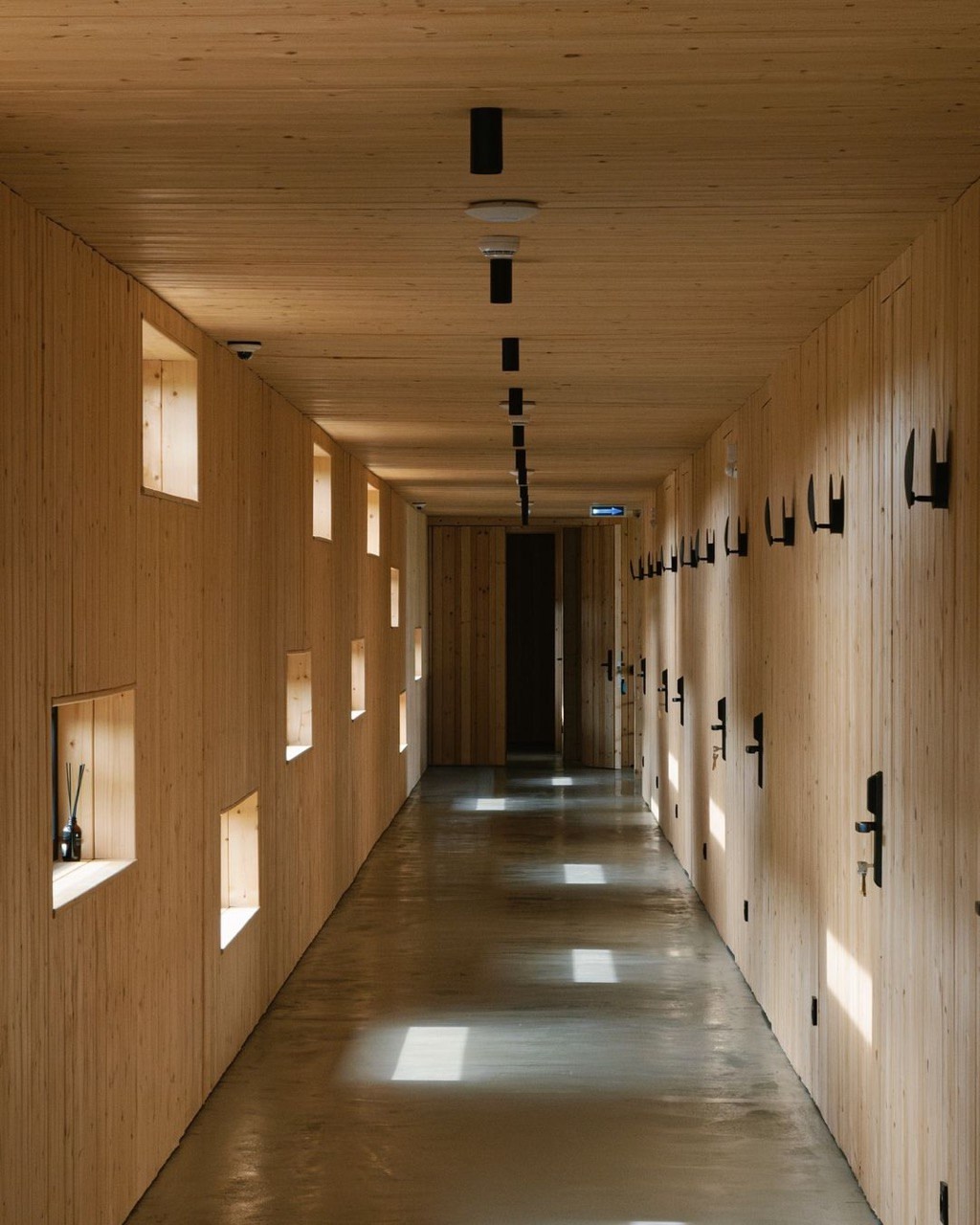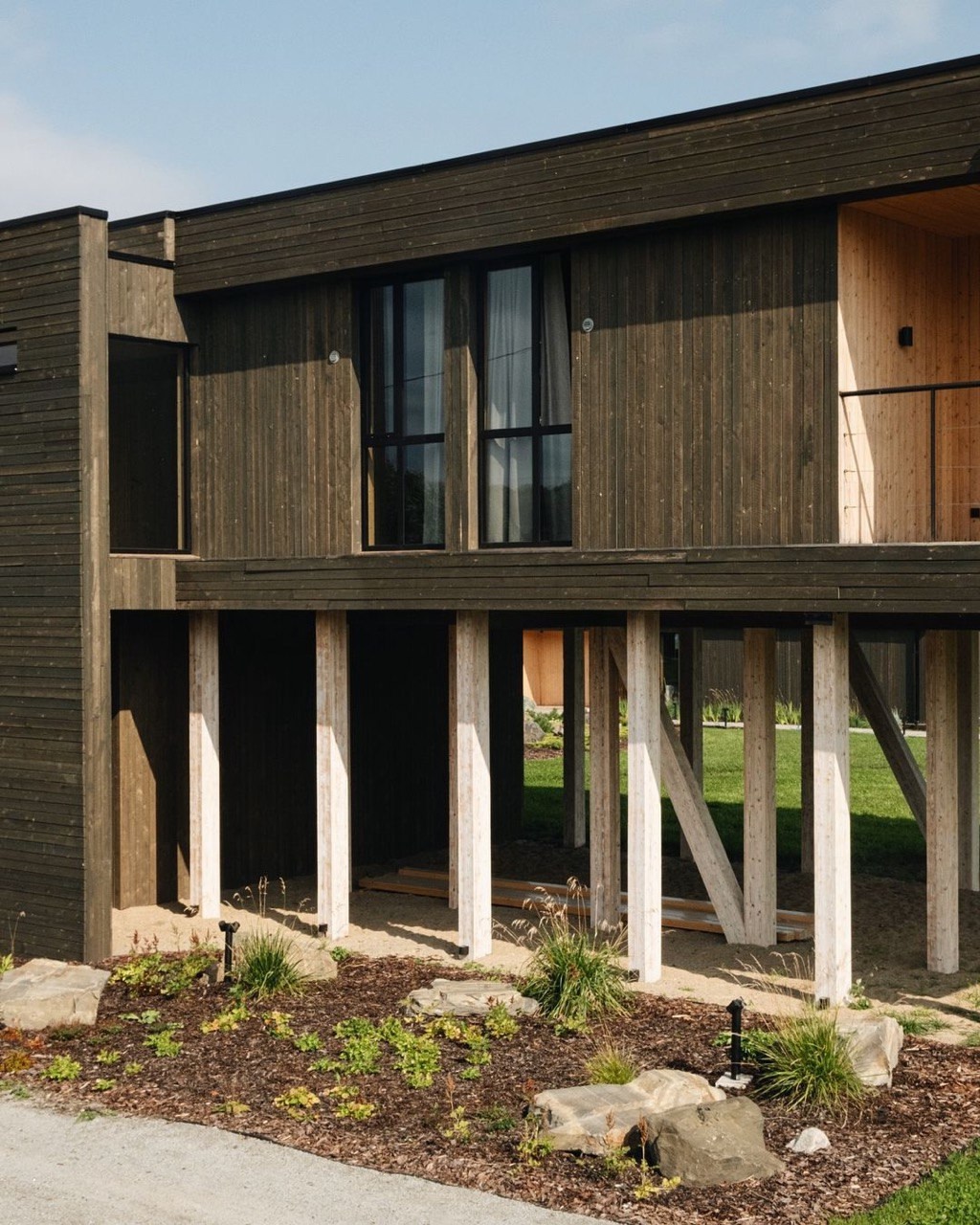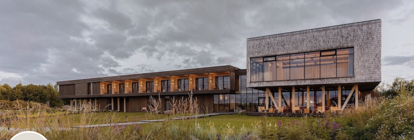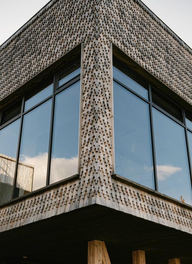 — Комплекс включает два гостевых дома, сауну и главное здание – гостиницу с залом для йоги и мероприятий. Здания отличаются простыми ортогональными объемами, уходящими корнями в северные традиции. Фасады облицованы гонтом, который изготовили и установили тем же реставраторы, что работали над церквями острова Кижи, — цитируют слова о бутик-отеле на сайте archi.ru.