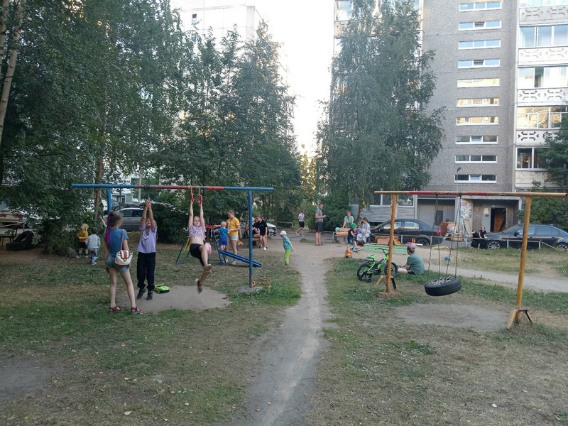 Как рассказали петрозаводчане, в конце весны во дворе между домами по адресу Лесной проспект, 5 и 7 родители своими силами благоустроили детскую площадку: сделали качели, повесили волейбольную сетку, отремонтировали песочницу и засыпали туда песок, принесли игрушки, принесли свой спортивный комплекс для малышей. Жильцы сами поддерживали порядок, убирали мусор, листву.