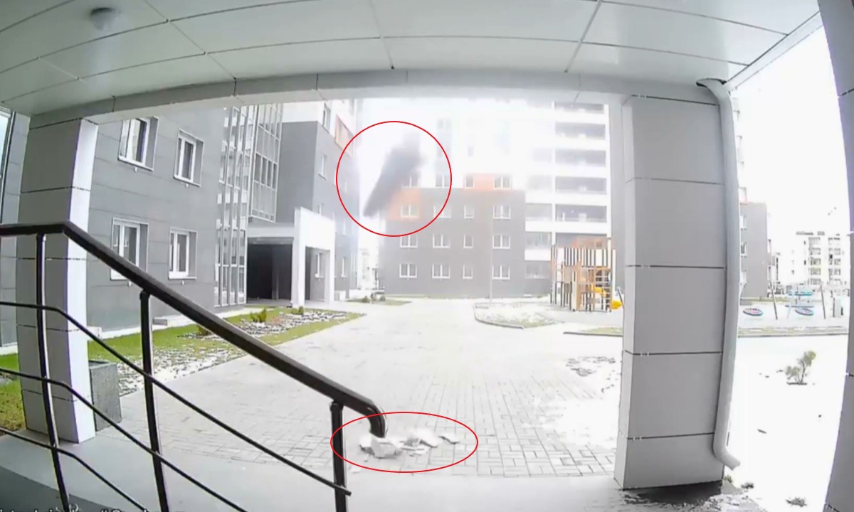 28 апреля в 5:29 утра в одном из дворов новостройки куски крыши рухнули прямо перед входом в подъезд. К счастью, в тот момент там никого не было. Если бы кусок упал кому-то на голову, то он мог бы серьезно пострадать. Момент падения запечатлела камера умного домофона «Ситилинка». Возможно, куски оторвало из-за штормового ветра.