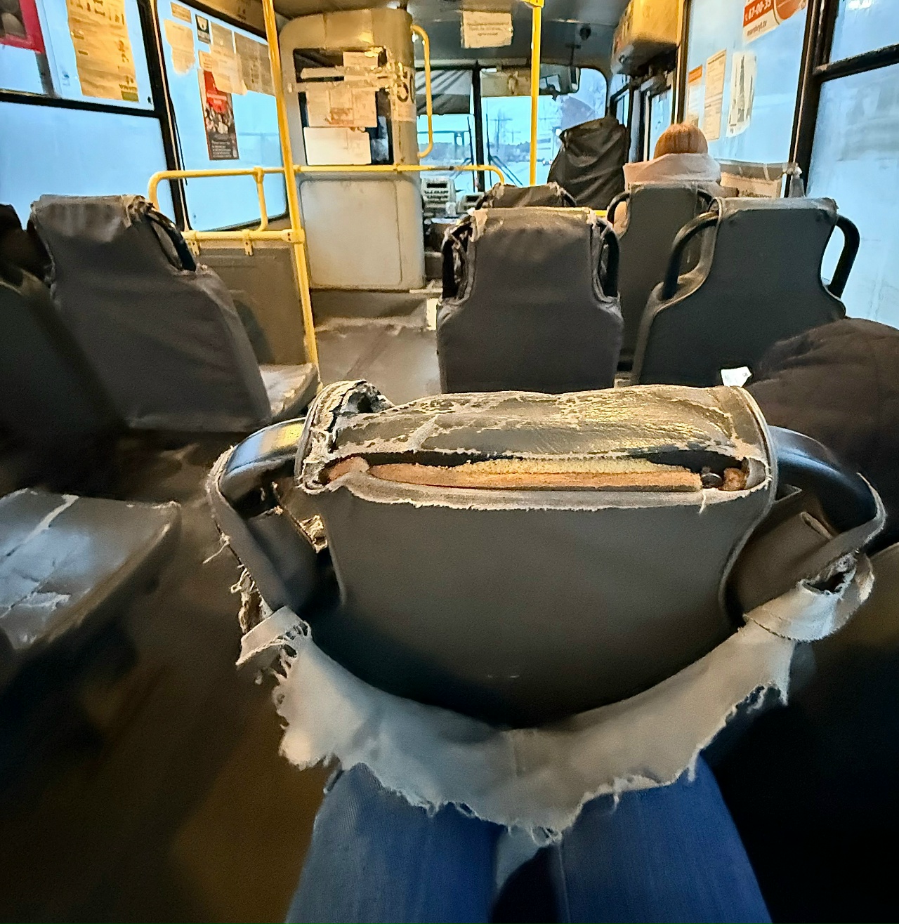 Мы уже писали, что в некоторых автобусах такие драные сиденья, что легко можно испортить одежду. Петрозаводчане давно их начали сравнивать со скотовозками.