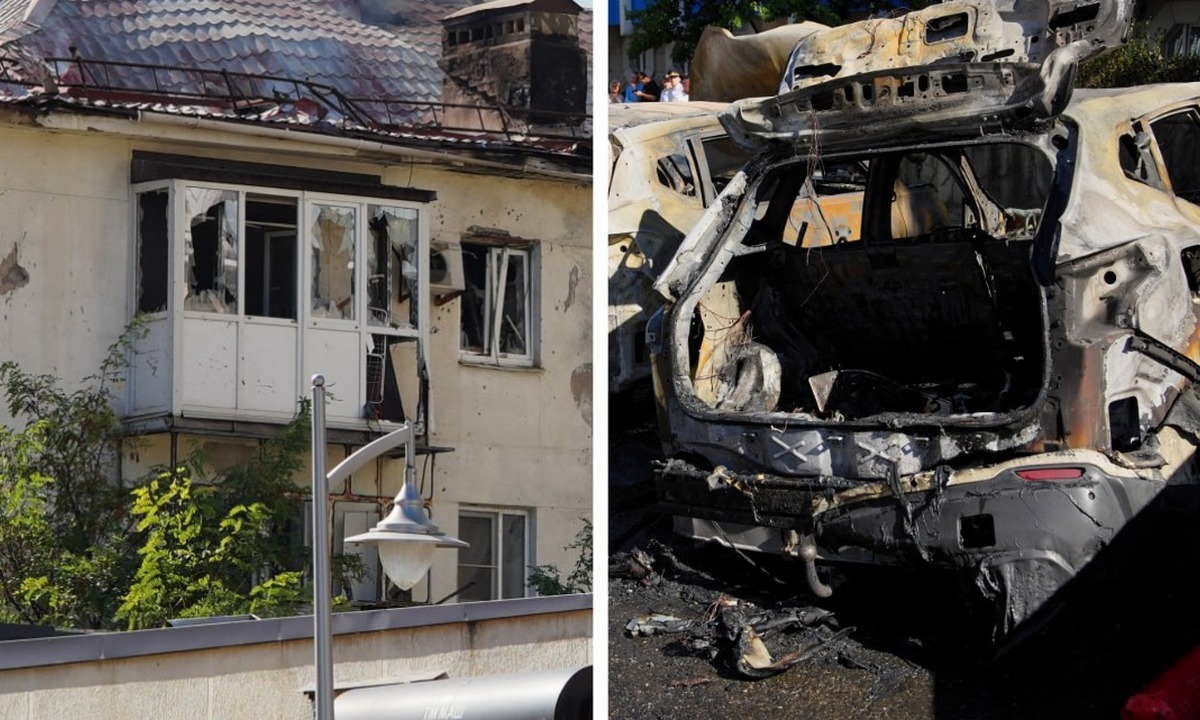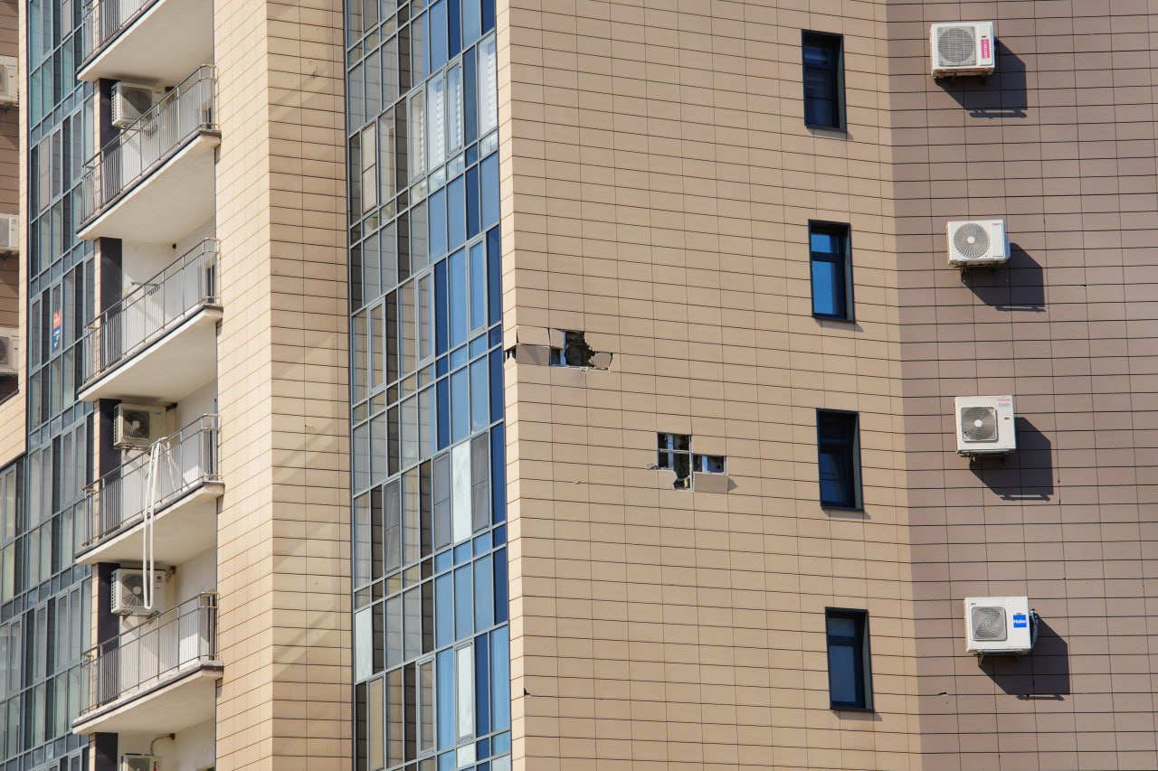 Удар пришелся по району гостиницы «Новороссийск», повреждения получили пять домов, в том числе многоквартирные. Один из домов загорелся.
