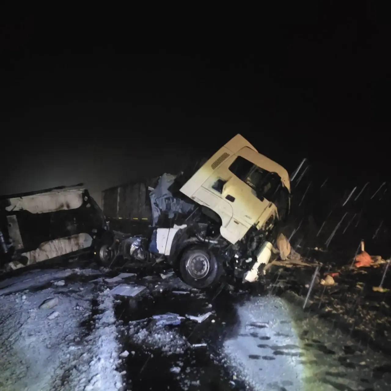 Появились фото с места страшного ДТП, где загорелись грузовики