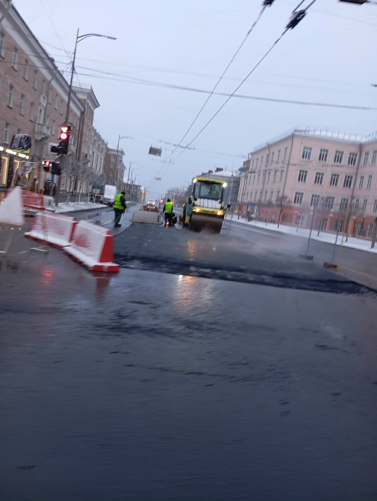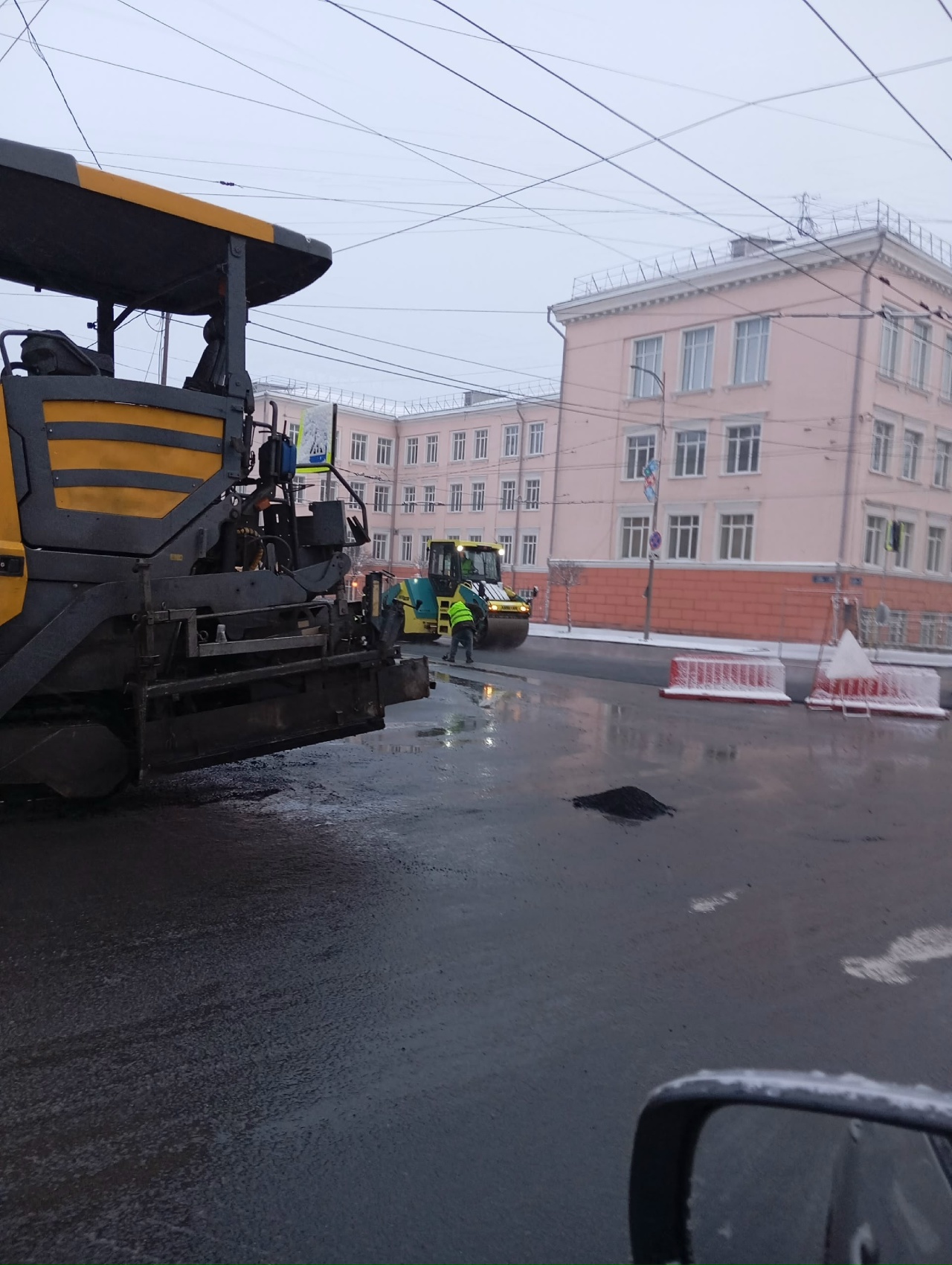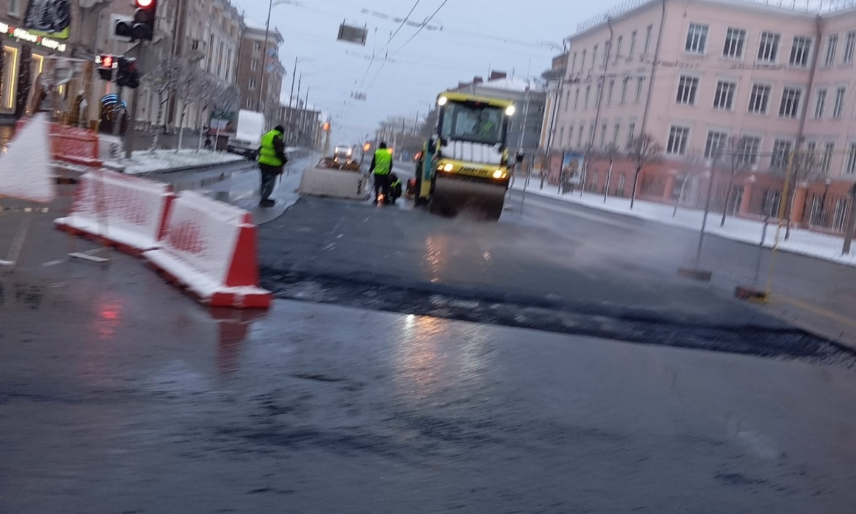 «Позорную» яму в центре Петрозаводска заасфальтировали в дождь и снег