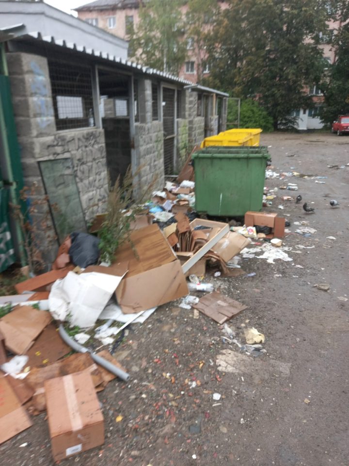 Вот так, например, выглядит контейнерная площадка в одном из дворов в центре города. По словам автора фото, хаос на помойке продолжается уже несколько месяцев.