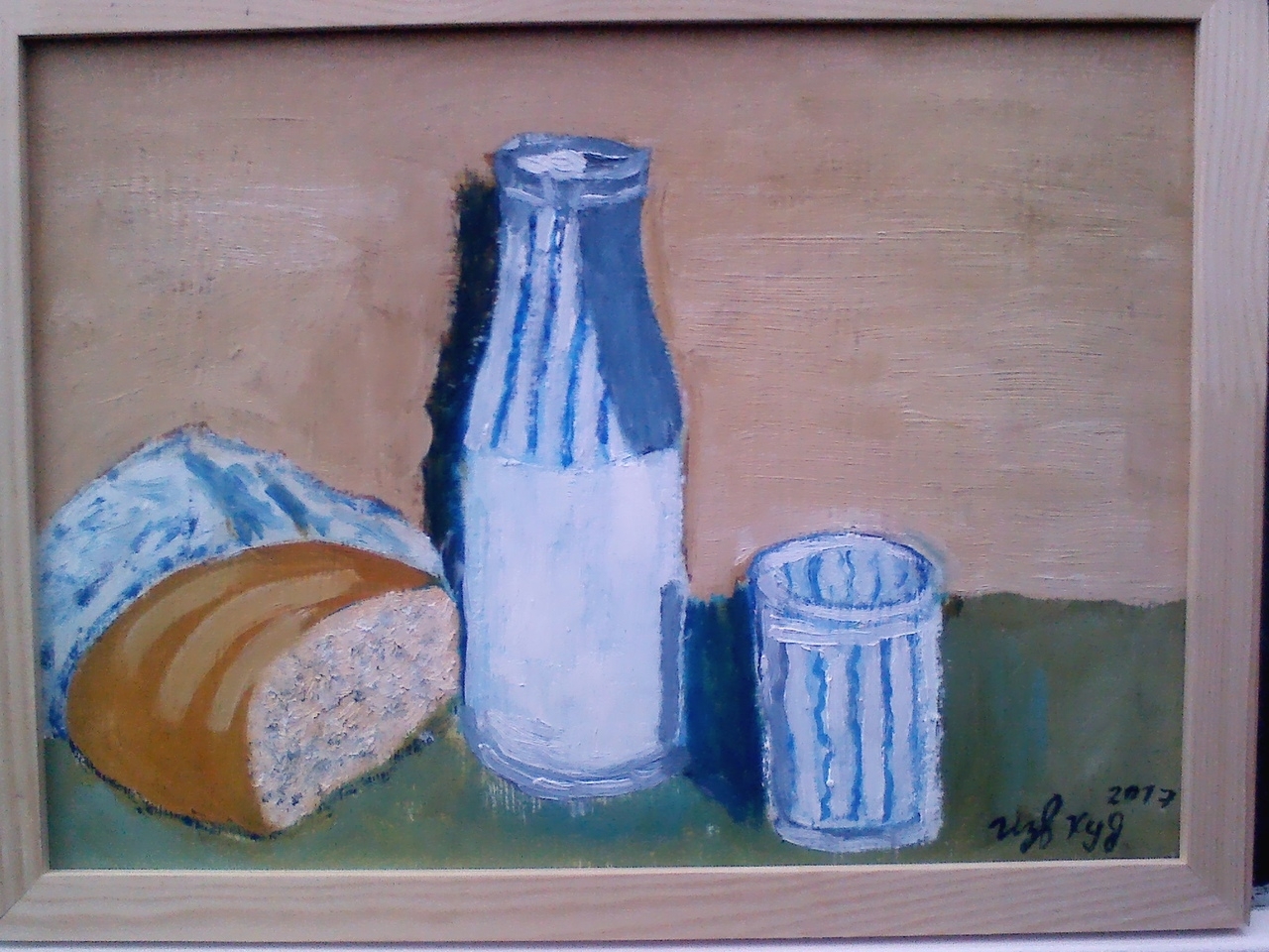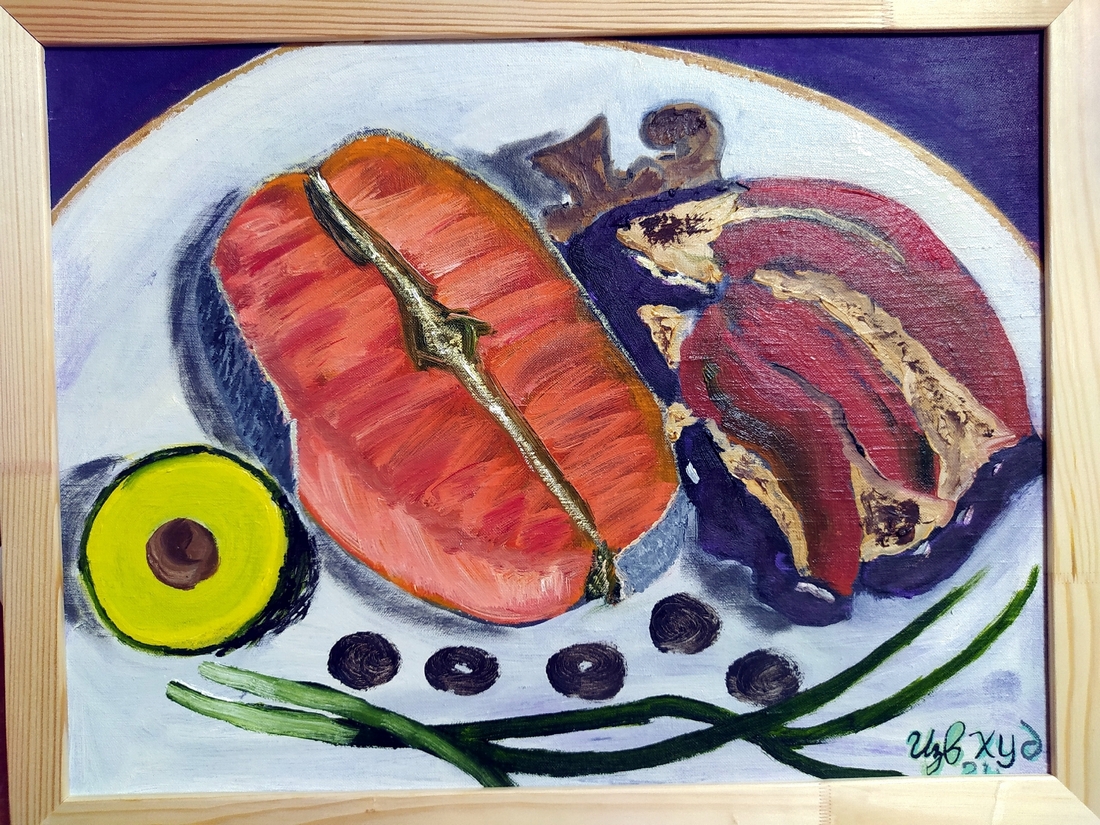 — Идея картины такова. Бутылка оставлена, стакан не вымыт и булка уже покрывается налетом плесени. Где человек? Что с ним? Картина должна заставить думать. Поставить вопросы перед зрителем, — рассказал об одной из картин автор.