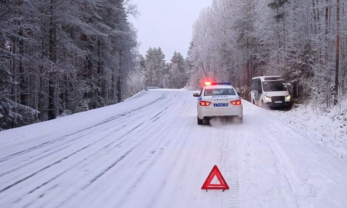 Сегодня утром в Лоухском районе рейсовый автобус вылетел в кювет: пострадали пассажиры, в том числе ребенок.