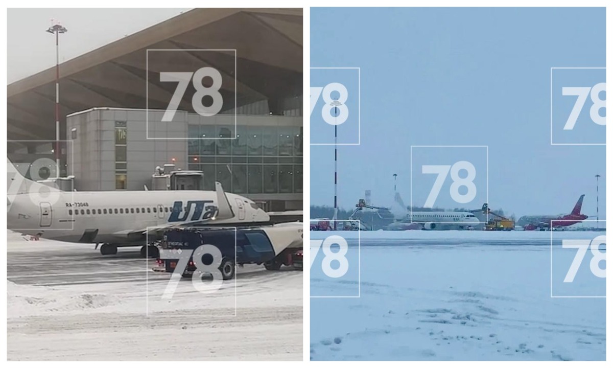 В аэропорту Пулково в Санкт-Петербурге самолет застрял в сугробе при попытке выехать на взлетно-посадочную полосу. Борт пришлось вытаскивать спецтехникой.