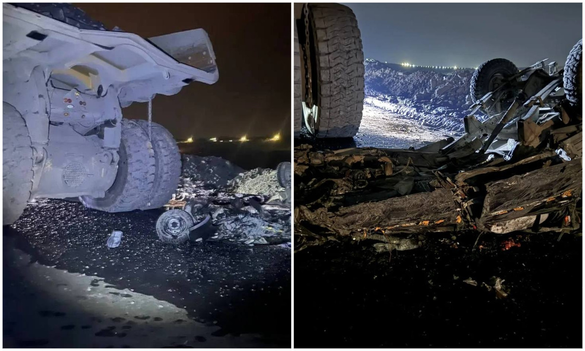 Самосвал, груженный камнями, расплющил машину с работниками карьера: пять человек погибли.