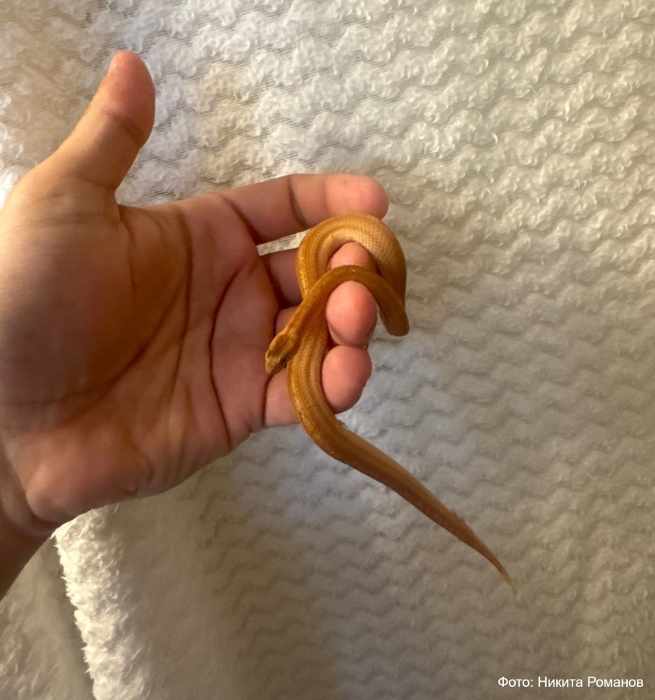 — Этот вид удавов нормально относится к людям — дается в руки, не кусается. Не знаю, каким он будет во взрослом возрасте, но сейчас он ни на кого не кидается. Обычно, когда они чувствуют опасность или, скажем, защищаются, они сворачиваются клубком, а у Шнурка такого нет, он спокойно ползает по рукам, — рассказал Никита.