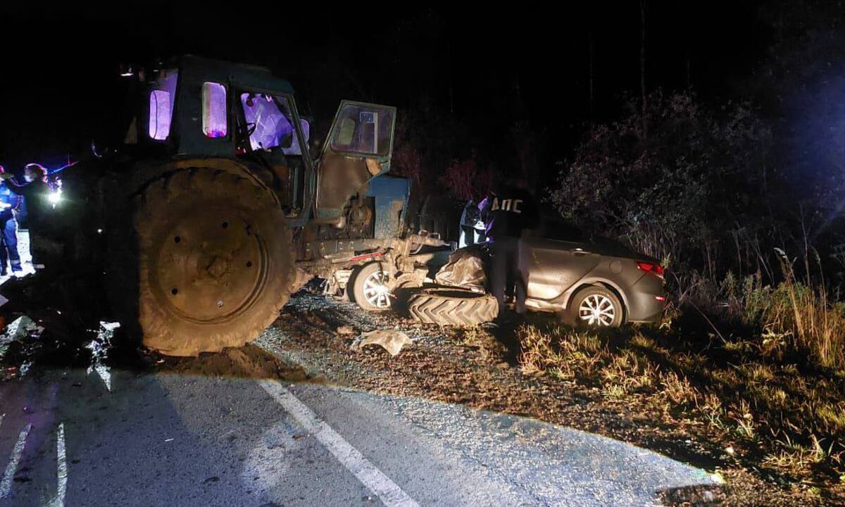 На трассе Талица — Бутка в Свердловской области произошла страшная авария — легковая машина столкнулась с трактором. Погибли четыре человека, в том числе ребенок.
