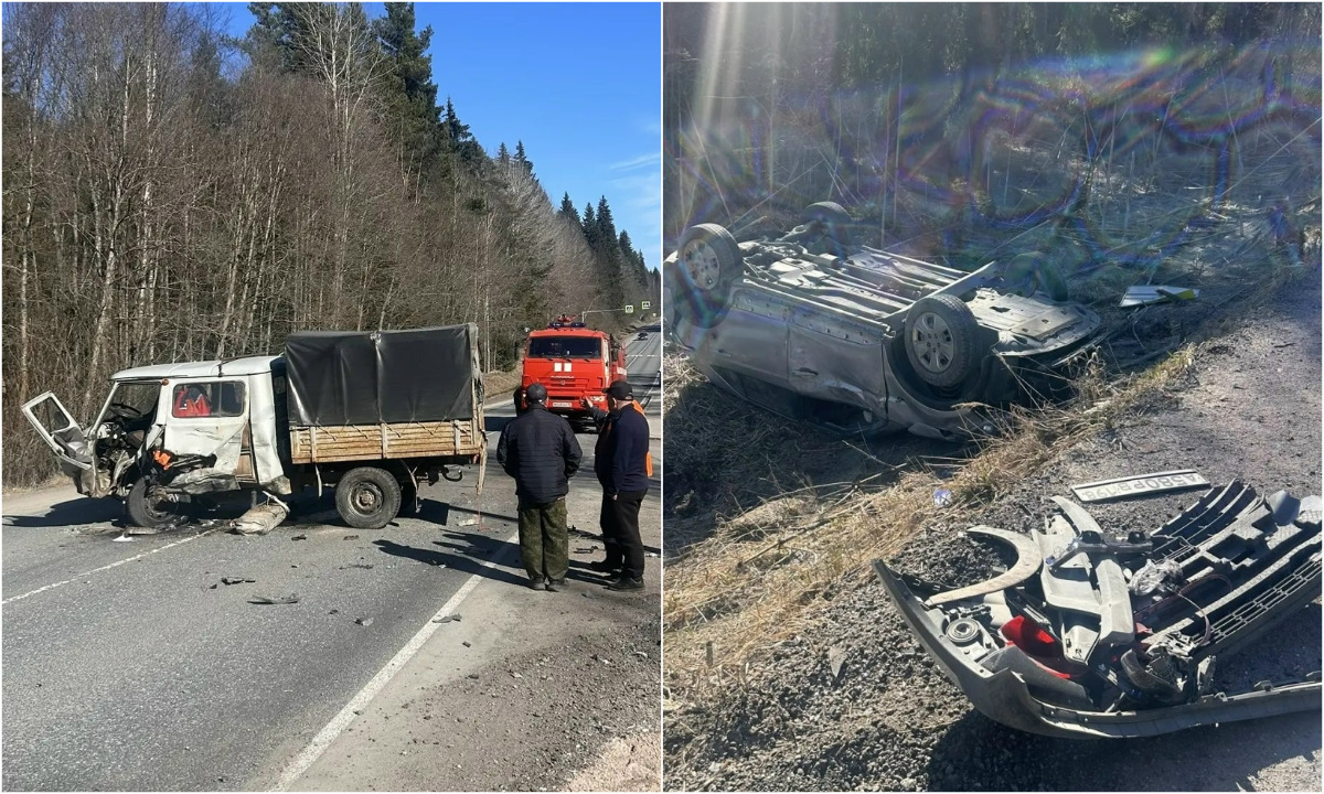 Судя по фото, оба автомобиля получили серьезные повреждения, а один улетел в кювет и перевернулся. Чудом никто не пострадал, отметили в 38 пожарно-спасательной части Сортавала.
