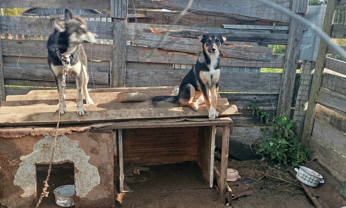 В Карелии чиновники отказались забирать в приют собак, которые прибились к жителю деревни. Животные ютятся в маленькой будке, а у семьи нет возможности их содержать — собакам срочна нужна помощь.