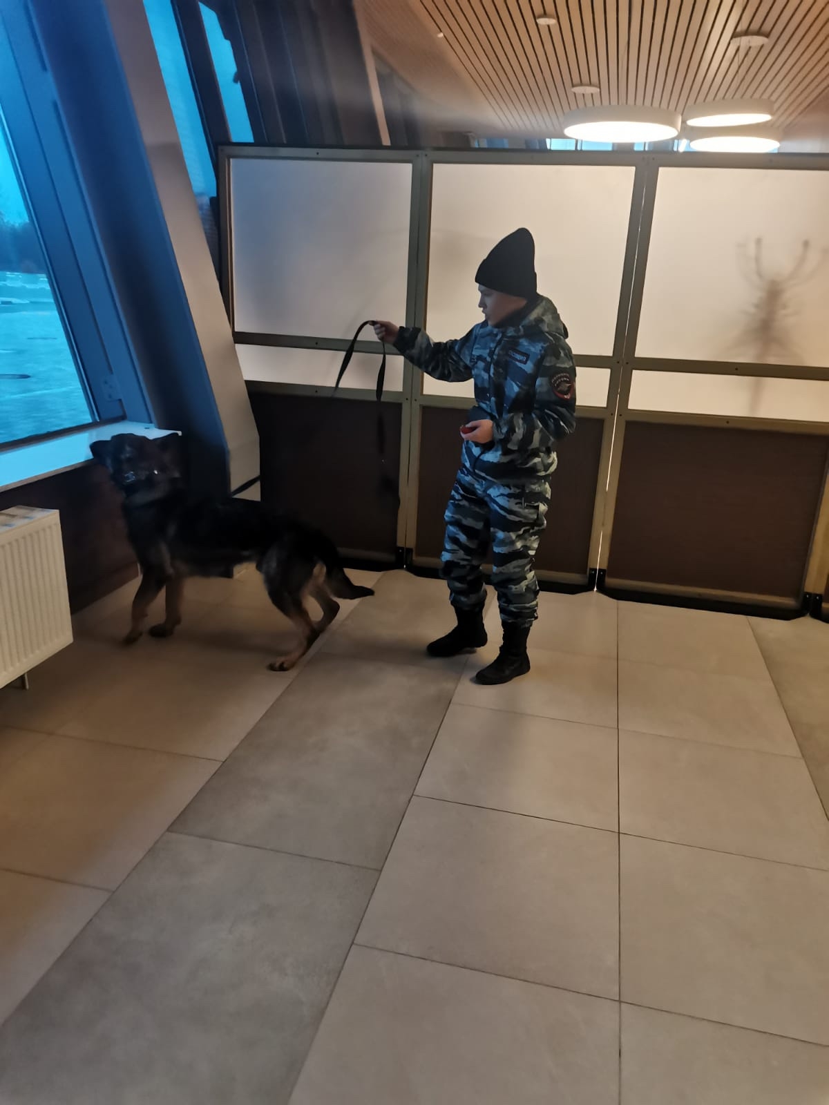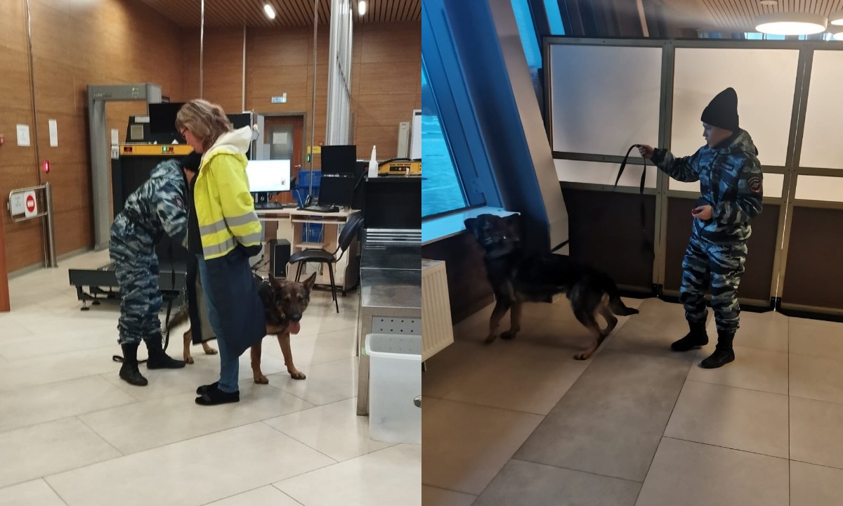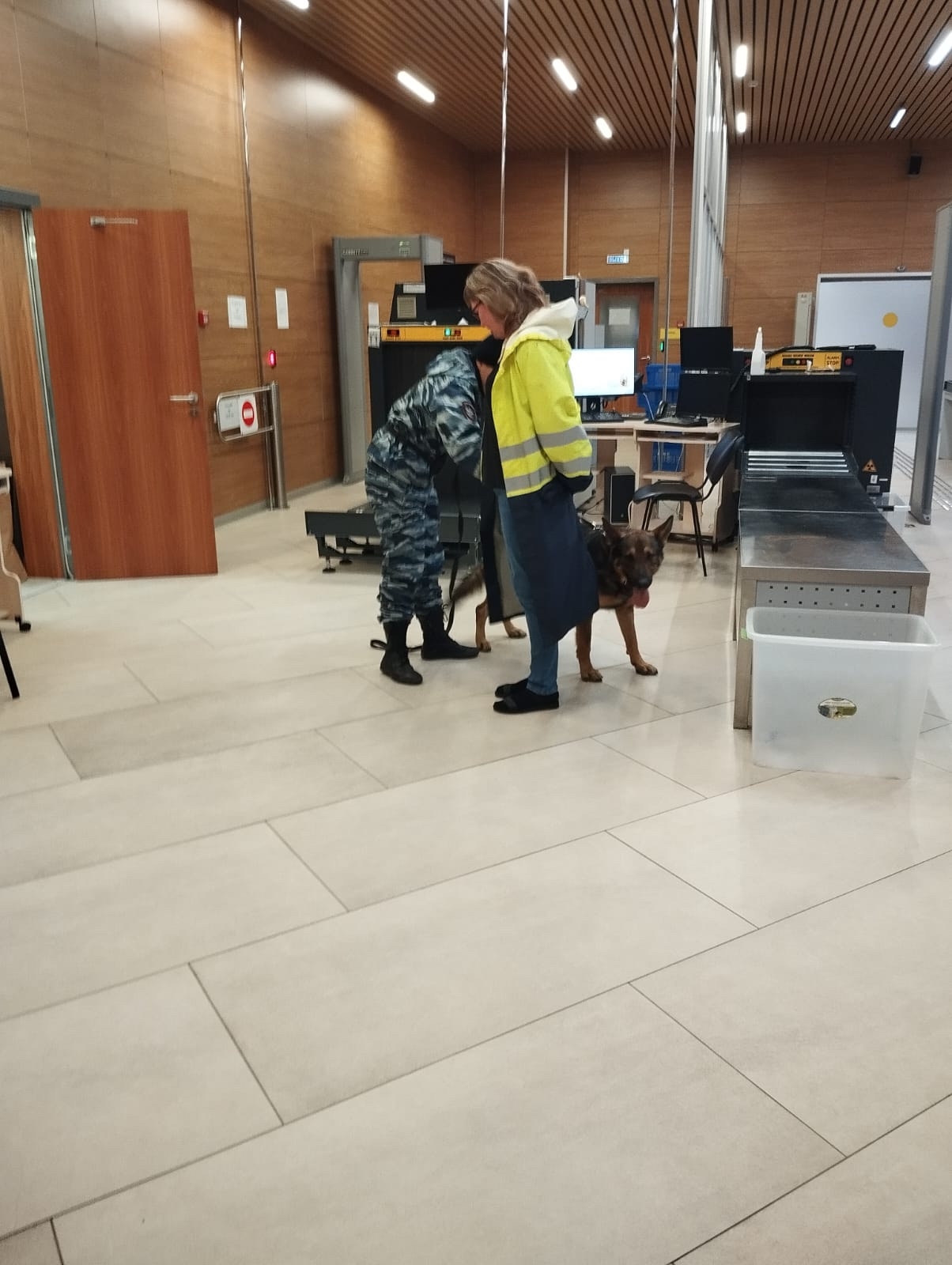 Условия постарались сделать максимально близкими к реальным. Во время практической части служебная собака почувствовала запах закладочного маркера и с помощью специальной стойки подала сигнал кинологу. После этого на место вызвали сотрудников службы безопасности для дальнейшей проверки — так отрабатывается стандартная схема действий.