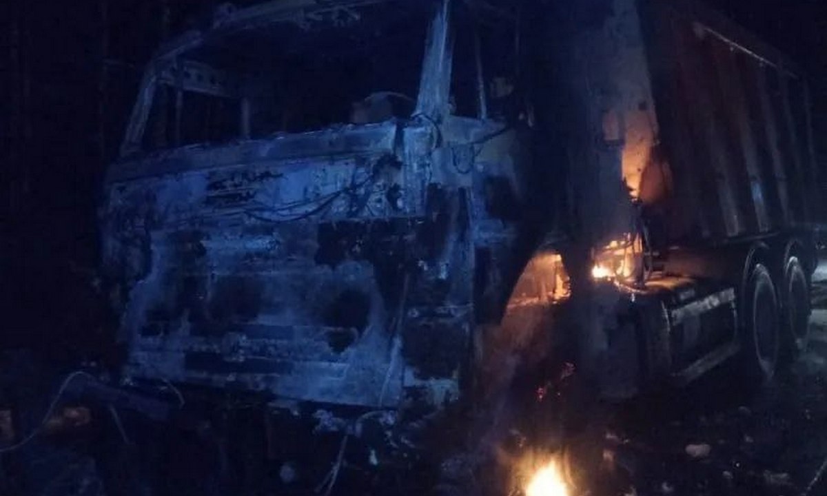 Снегоуборочная машина загорелась ночью на трассе в Карелии
