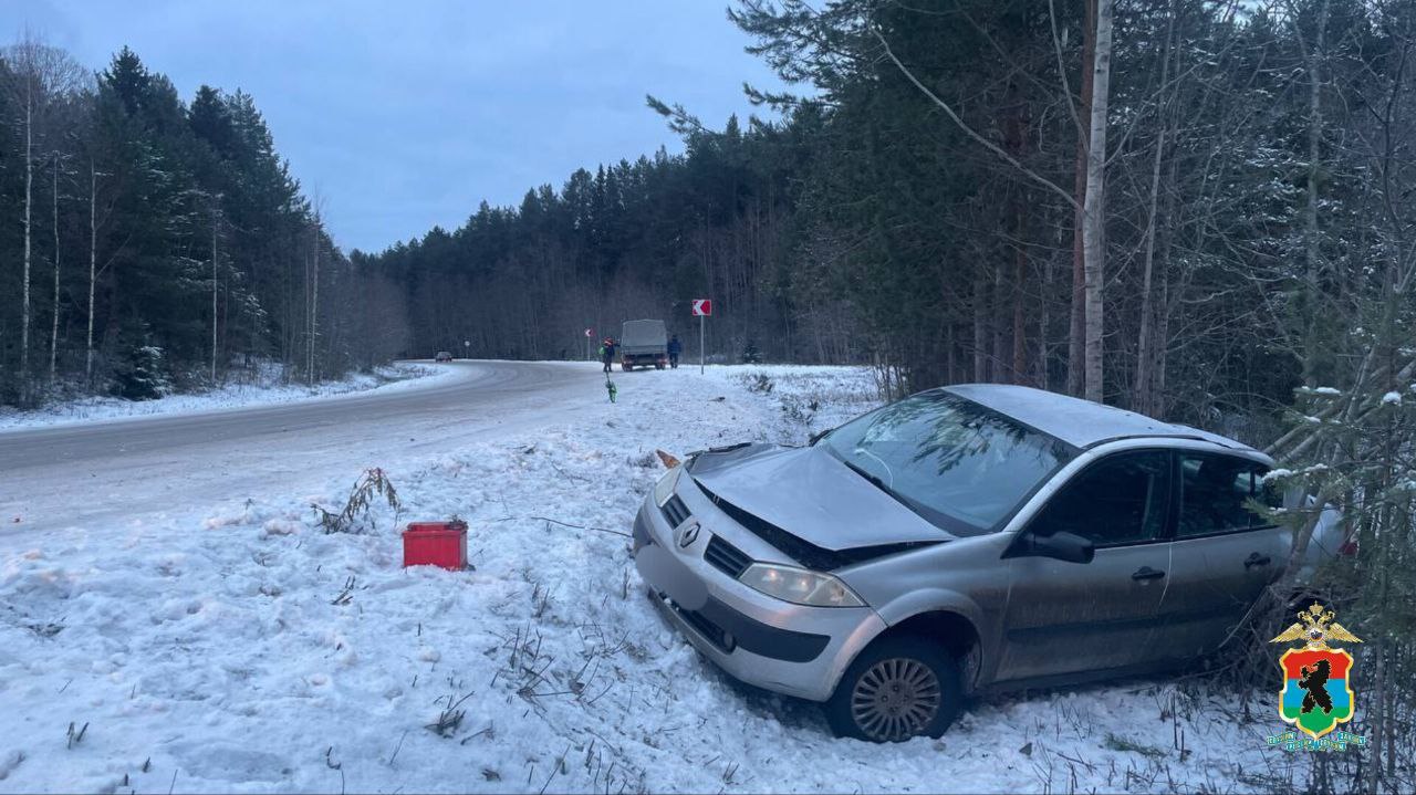 По данным полиции, авария случилась вчера, 14 декабря, в 13:30 на дороге Медвежьегорск-Толвуя-Великая Губа (63 км.) Женщина-водитель за рулем Renault Megan, при прохождении правого поворота, выбрала небезопасную скорость движения, не учла дорожные и погодные условия, и вылетела в кювет.