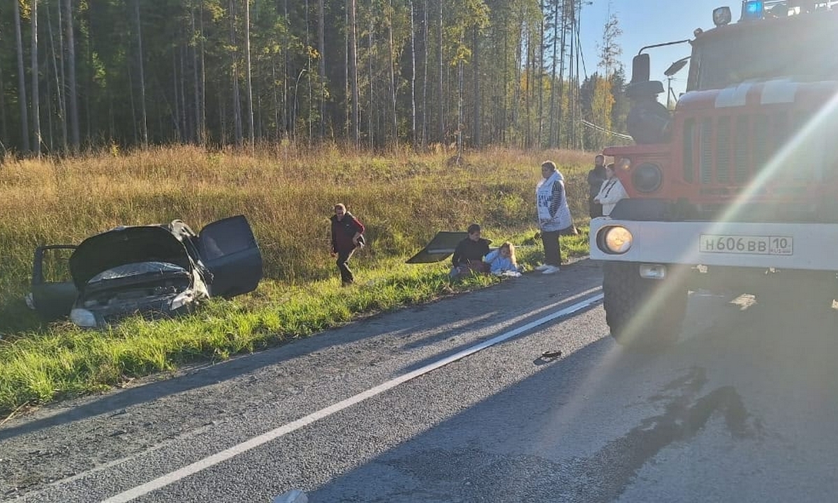 В ГИБДД Карелии рассказали подробности страшной аварии на трассе в Карелии: после столкновения один автомобиль вылетел в кювет. Стал известен возраст пострадавших детей.