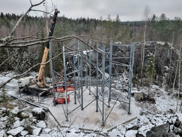 Оснащение веревочного парка «Башня» в Горном парке «Рускеала» завершается. Все этапы и линия страховки смонтированы.