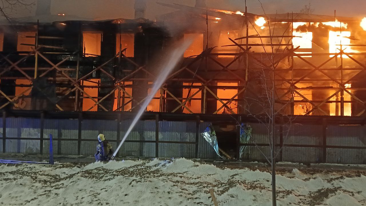 Напомним, Дом горного начальника вспыхнул вчера вечером. За считанные минуты здание было объято огнем.