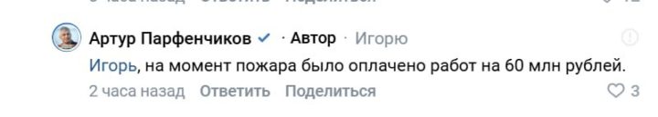 По данным губернатора, на момент пожара фирме было оплачено работ на 60 миллионов рублей.