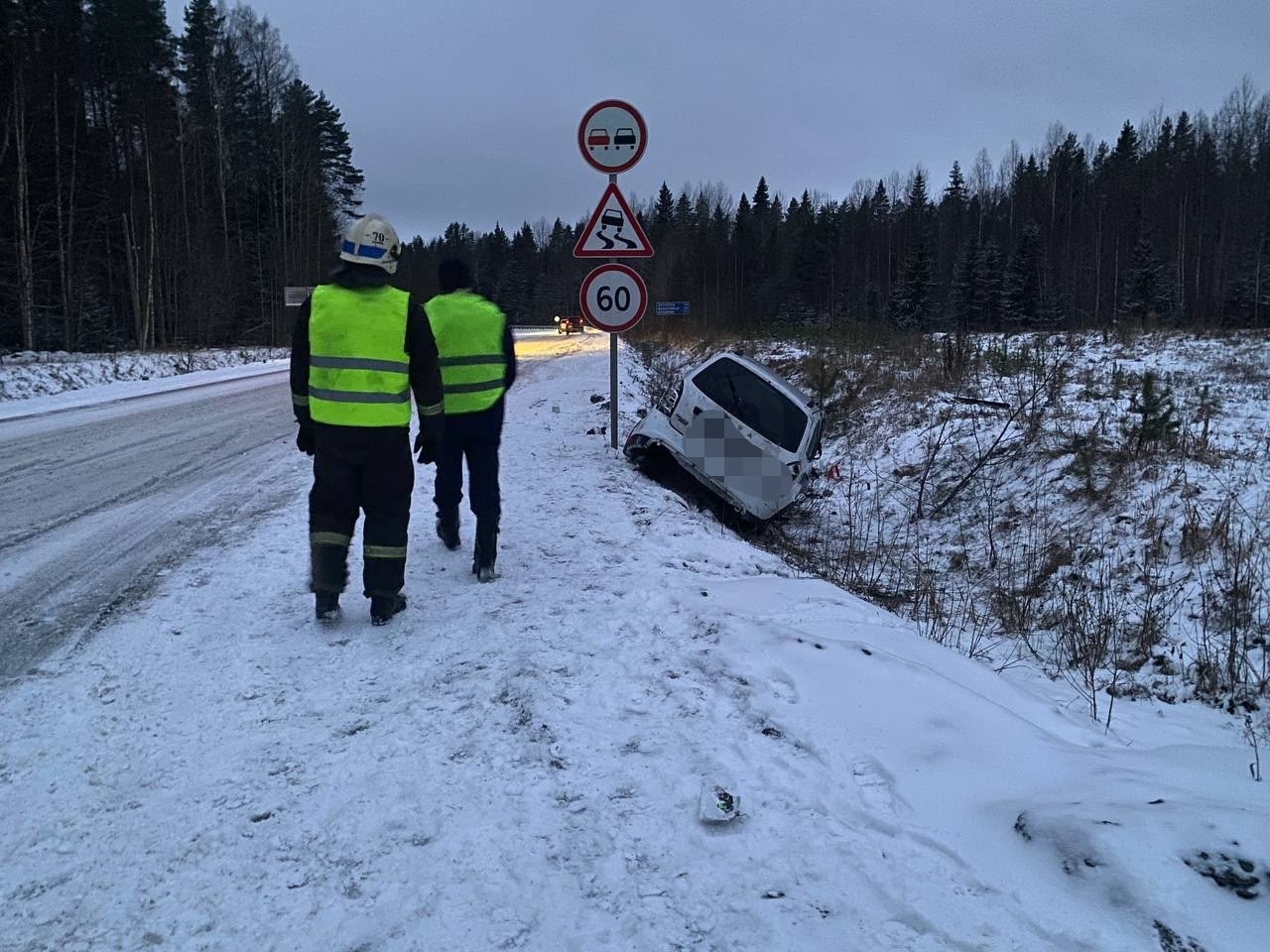 Как сообщают пряжинские спасатели, автомобиль вылетел в кювет.