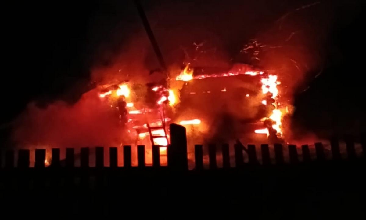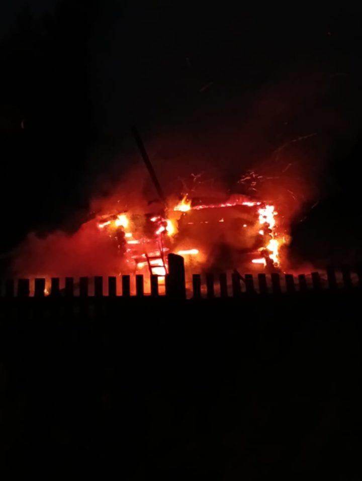 Сообщение о пожаре поступило в 00:01. К приезду пожарных деревянная баня была полностью охвачена огнем.
