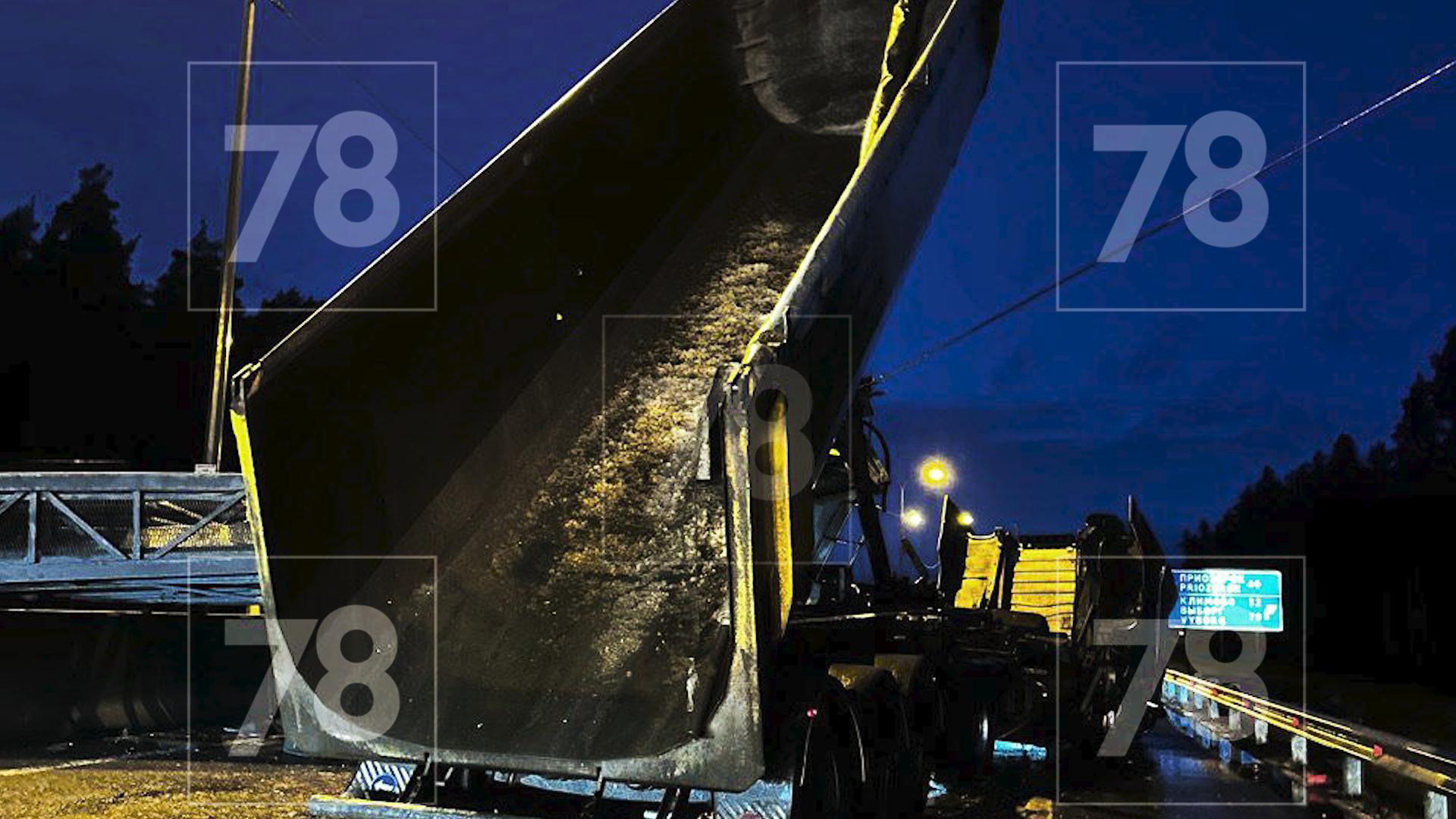 Как сообщает 78.ru, сегодня утром на 70 километре трассы А-121 «Сортавала» грузовик забыл опустить кузов и сбил опору для дорожных знаков — конструкция рухнула на дорогу. После аварии трасса оказалась перекрыта полностью. К счастью, никто не пострадал.