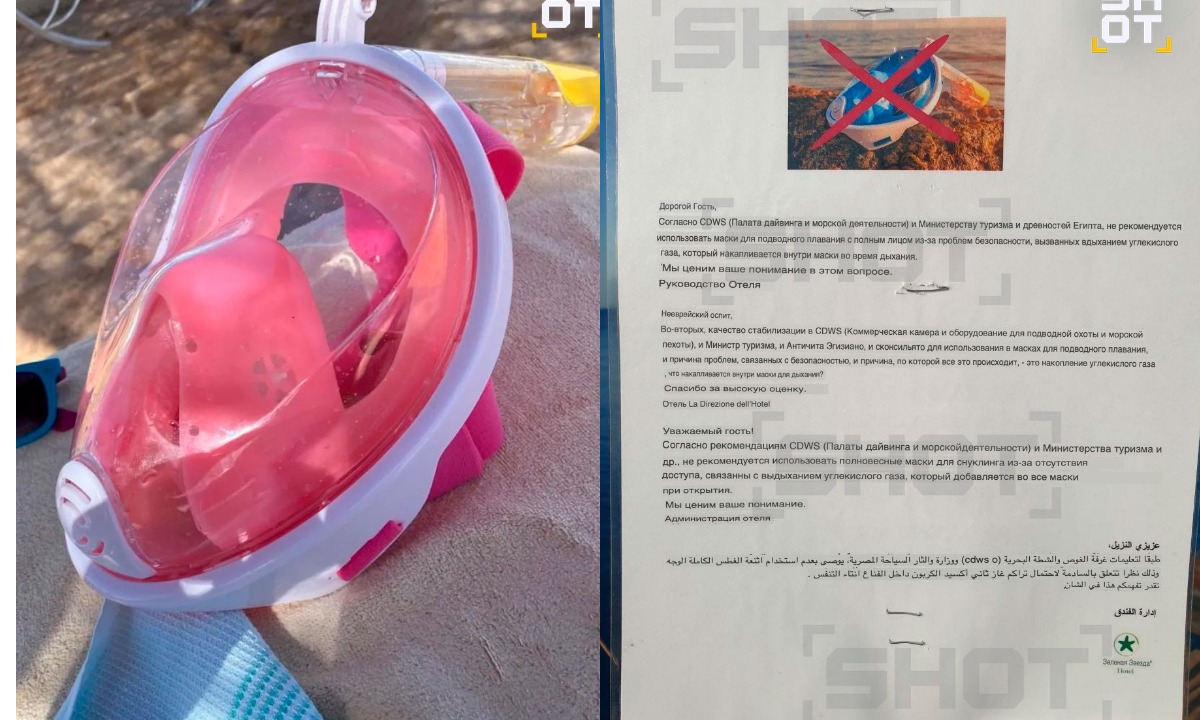 Как сообщает SHOT, в египетских отелях расклеивают объявления, в которых постояльцам рекомендуют не покупать полнолицевые маски для снорклинга. По словам экспертов, в них скапливается углекислый газ из-за неправильного выхода воздуха — в итоге можно им надышаться и потерять сознание в море. Кроме того, в таких масках трудно дышать, а еще в них скапливается вода.