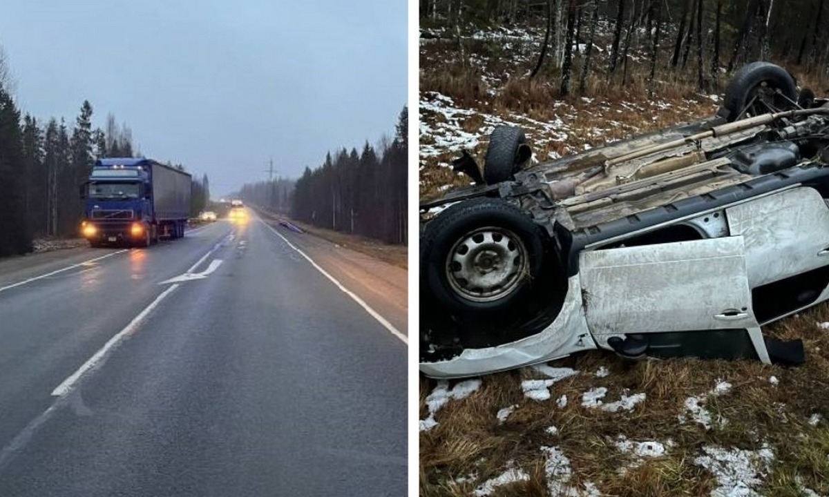 В Карелии автомобиль перевернулся из-за колеса, отлетевшего у грузовика