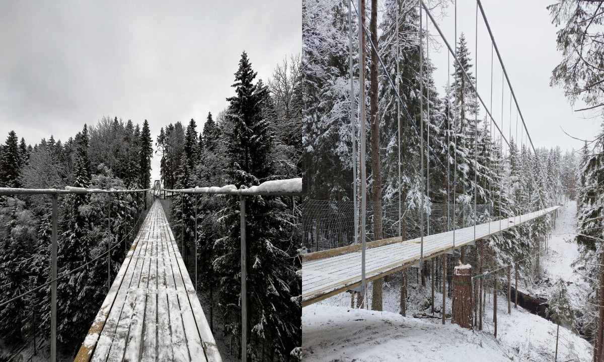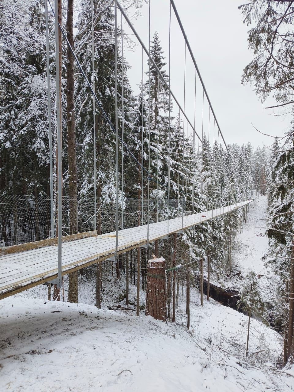 В экопарке «Долина водопадов» (Лахденпохский район) подходят к концу работы по строительству самого длинного подвесного пешеходного моста в Карелии.