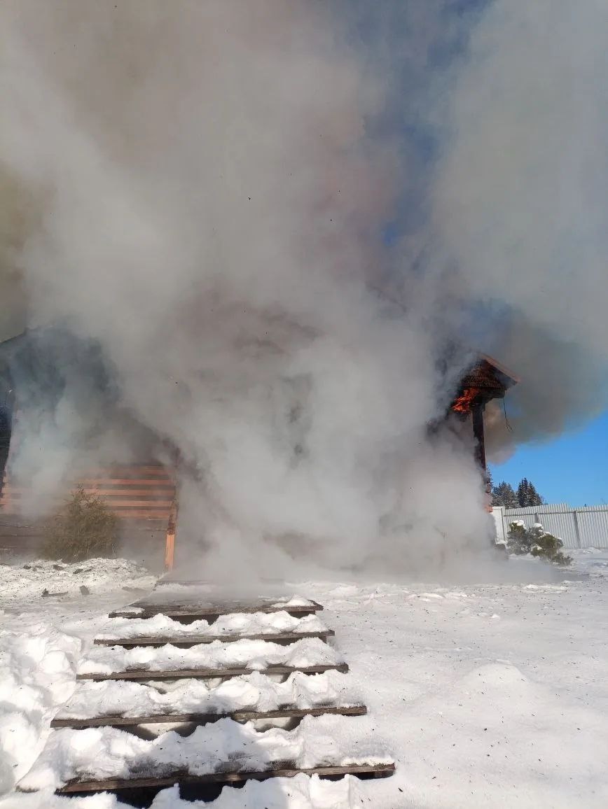 Страшный пожар сегодня вспыхнул в поселке Куркиеки Лахденпохского района.