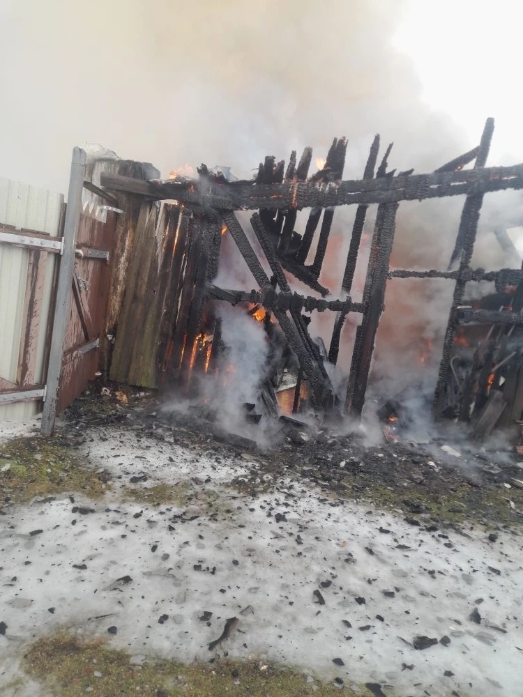 Вчера днем сараи вспыхнули в Медвежьегорске: огонь мог перекинуться другие постройки.