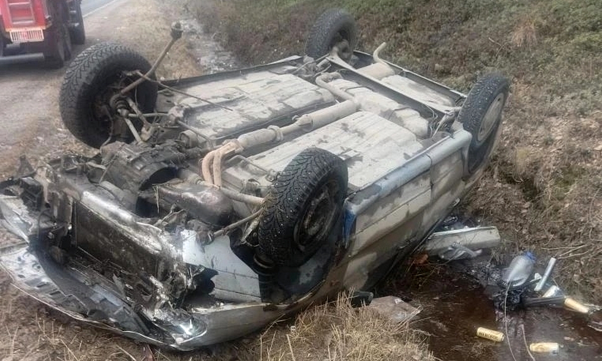В Карелии еще одна легковушка съехала в кювет и перевернулась. Водитель исчез