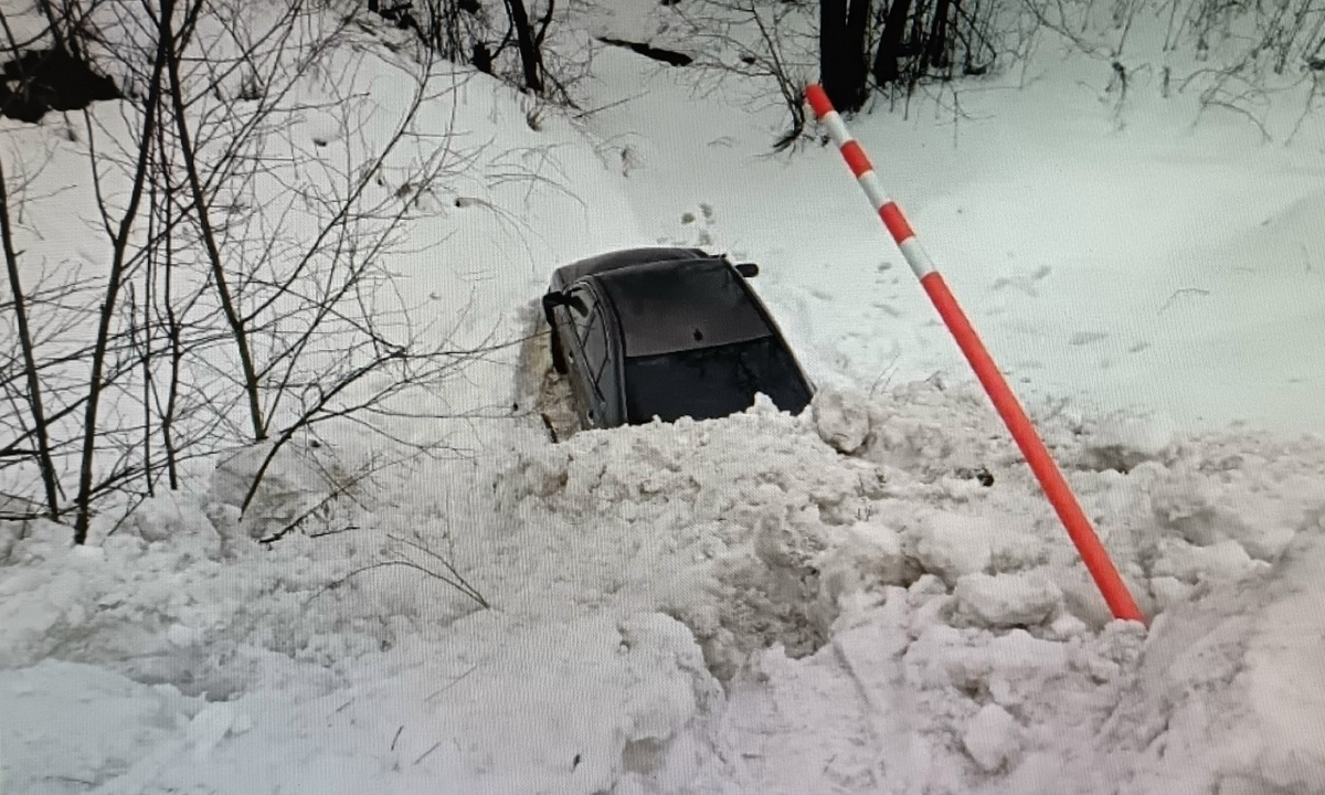 Вчера утром жесткая авария случилась в Олонецком районе. Автомобиль вылетела с дороги и рухнул в снежный овраг.