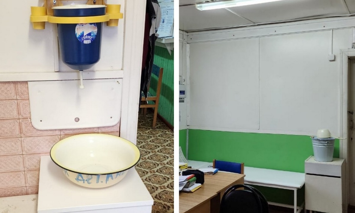 В суровых условиях работают медики в ФАПе поселка Подпорожье в Пудожском районе. Так, руки приходится мыть над тазиком из допотопного рукомойника.
