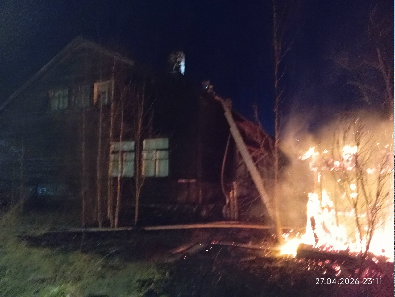 Загорелись сараи и жилой дом на улице Советская, 2. Когда пожарные прибыли на место, выяснилось: горят два сарая и стена дома, огонь уже перекинулся на крышу. Само здание было расселено, но в одной из квартир на первом этаже всё ещё жили люди.
