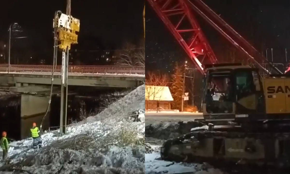 В Олонце начали реконструкцию моста через реку Мегрегу. Как сообщают в КУ РК «Управтодор», строители уже погружают шпунт — он нужен, чтобы сделать насыпь к будущим подходам временного моста. Также рядом обустраивают площадку под кран, который понадобится при дальнейших работах.