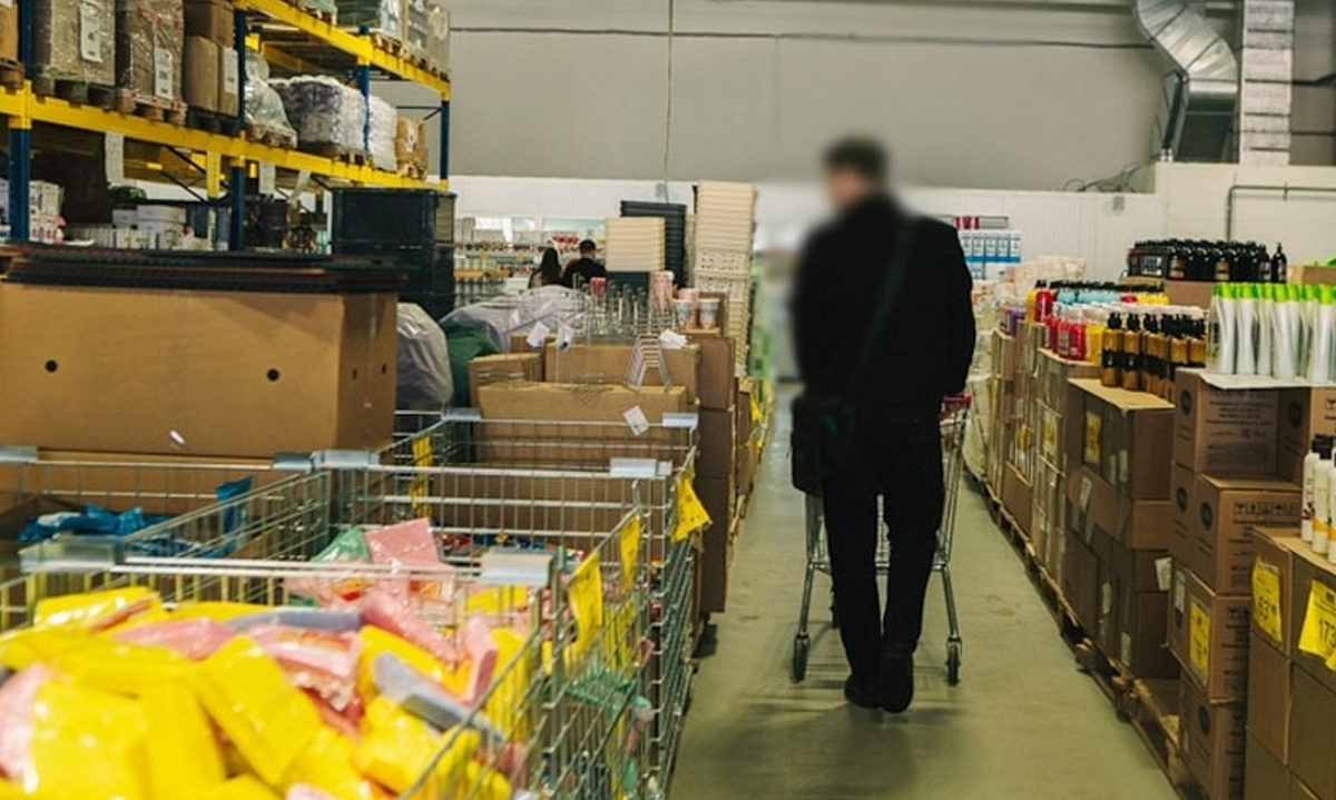 Работник магазина решил проверить, оплачен ли товар, и подошел к покупателю, который схватил продукты и побежал к выходу. Пьяного покупателя с горой товаров задержал администратор магазина.