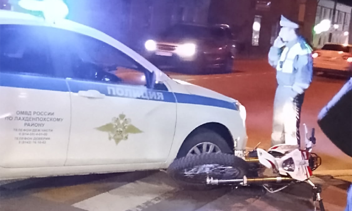 В Лахденпохье вчера машина полиции столкнулась с питбайком. Это произошло около семи часов вечера.